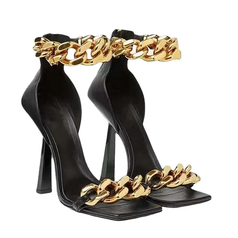 Женские босоножки на высоком каблуке, летние туфли-лодочки с открытым носком, с тонкой цепочкой и ремешком, повседневные туфли для вечеринок 810 см, 2021