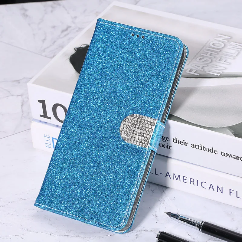 Блестящий Алмазный откидной кожаный чехол-бумажник для телефона Son...