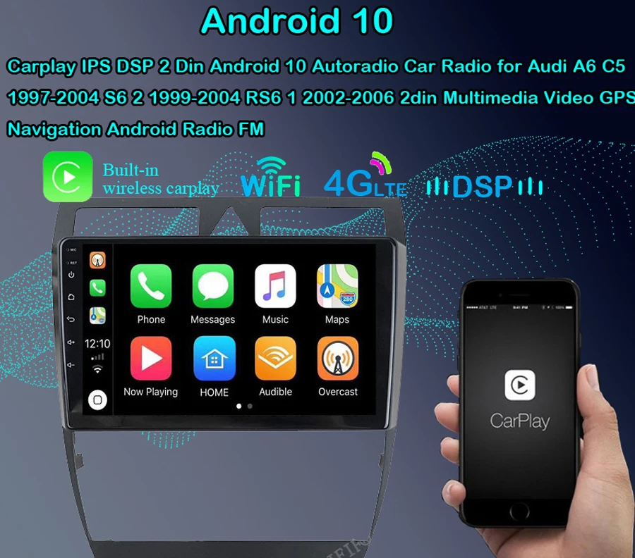 Авторадио автомобильное радио для Audi A6 C5 1997-2004 S6 2 1999-2004 RS6 1 2002-2006 2din Мультимедиа Видео GPS навигация Carplay Android