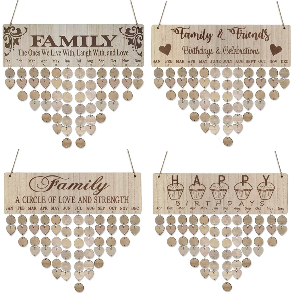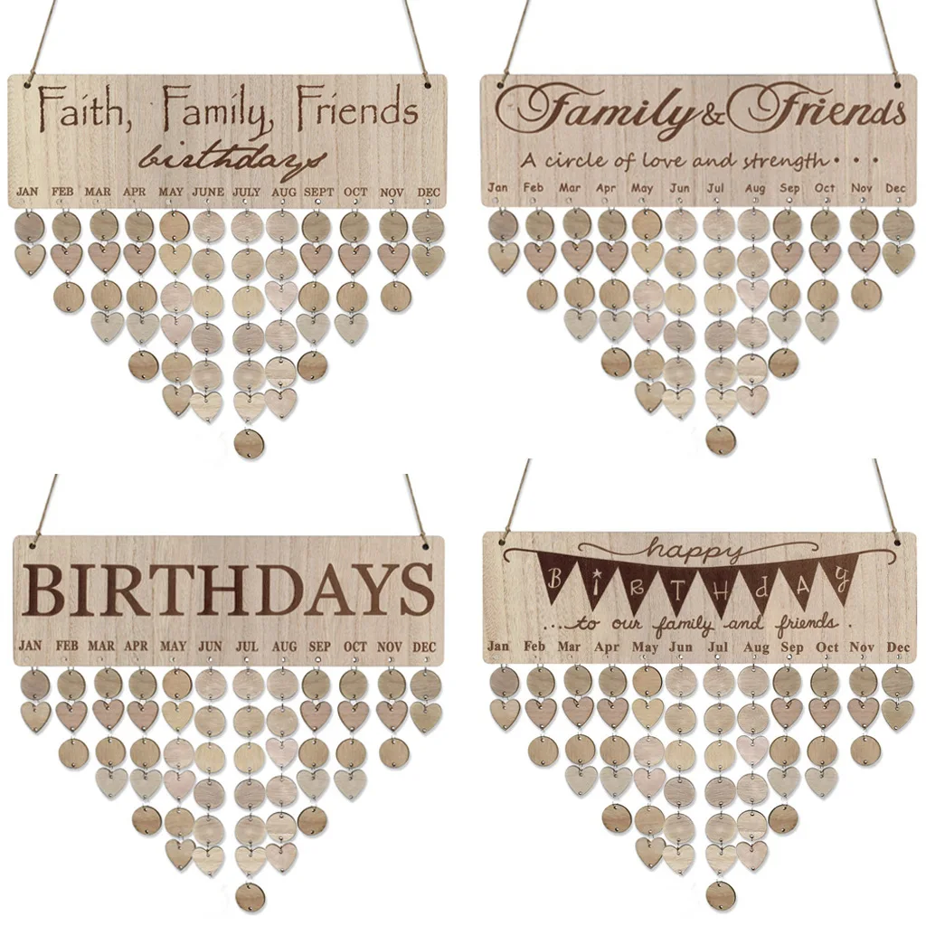 Деревянный календарь с напоминанием о дне рождения для семьи и друзей, настенный трекер, подвесная табличка доска, самодельные украшения для дома, подвески для комнаты