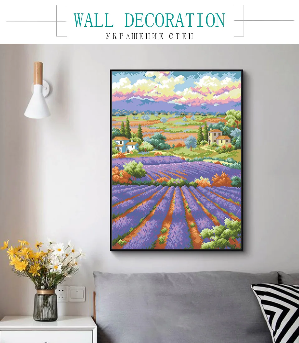 Лавандовое поле Счетный крестиком узор наборы без печати холст вышивка рукоделие 11CT 14CT DIY ручной работы Домашний декор живопись