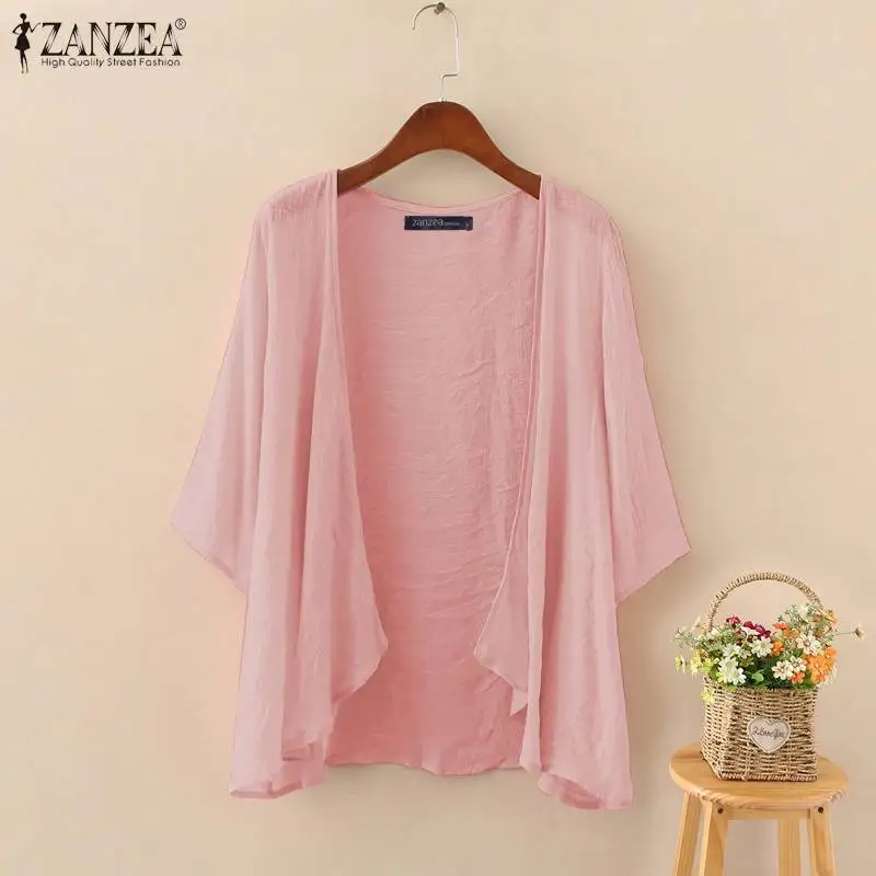 Женская летняя блузка 2022 ZANZEA модные однотонные кардиганы накидка Блузы с длинным рукавом Женская Туника Топы оверсайз кимоно накидка