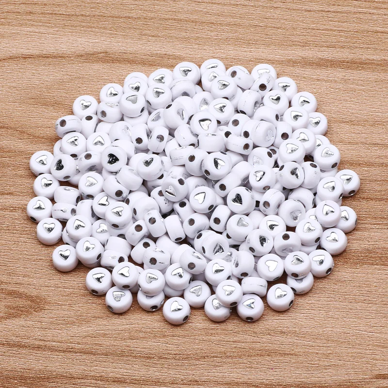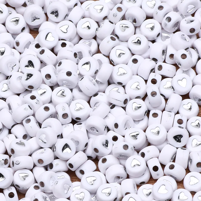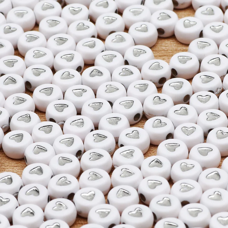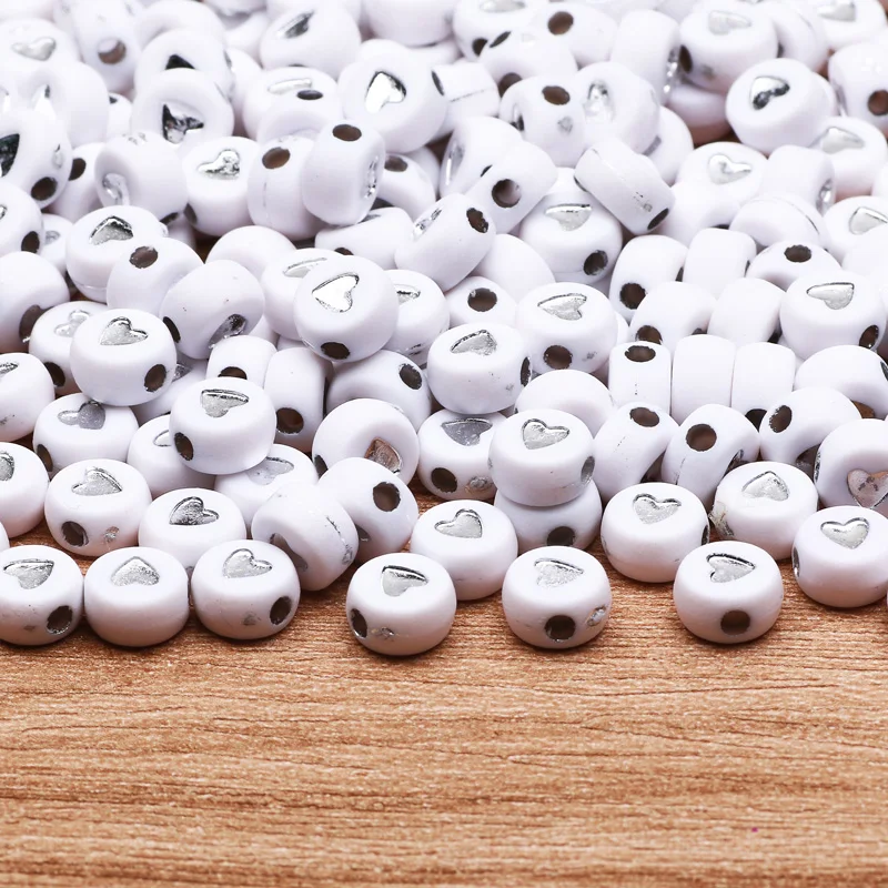 Белый посеребренный антенный Смешанные Сердце круглые акриловые бусины с плоским Свободные Spacer Бусины для изготовления ювелирных изделий Diy браслет ручной работы ожерелье 4*7 мм