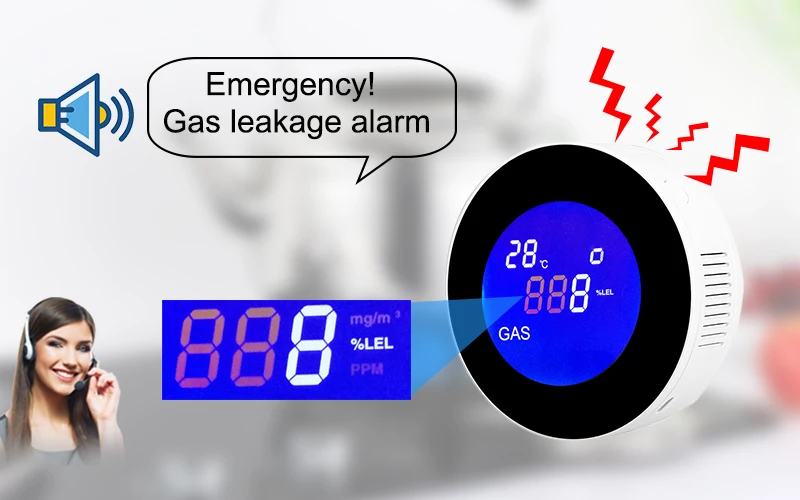 Смарт-датчик утечки природного газа Tuya с Wi-Fi, датчиком температуры и ЖК-дисплеем
