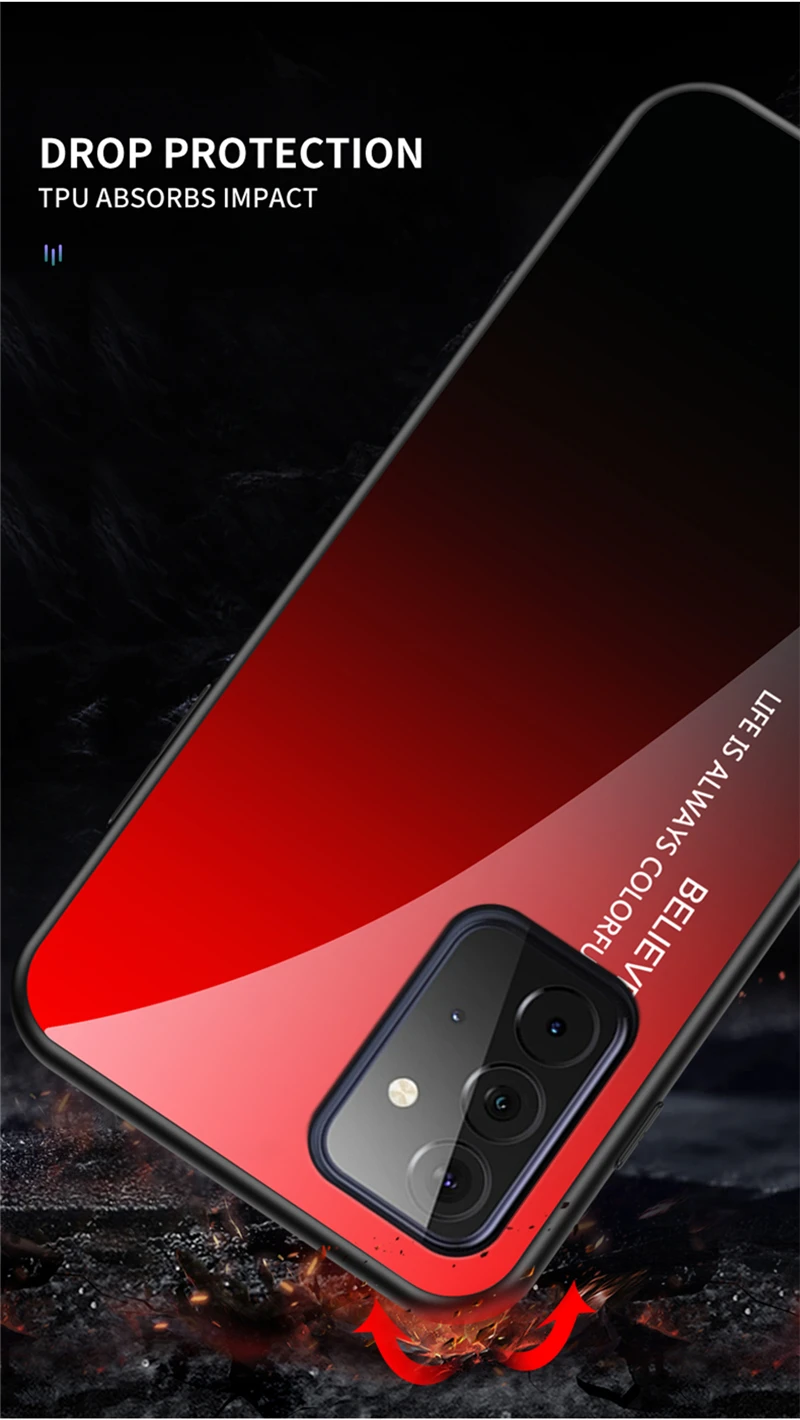 Чехол для Samsung Galaxy A02S A12 A32, противоударный армированный жесткий чехол из поликарбоната для Galaxy A42 A52 A72, градиентные стеклянные чехлы на заднюю панель телефона