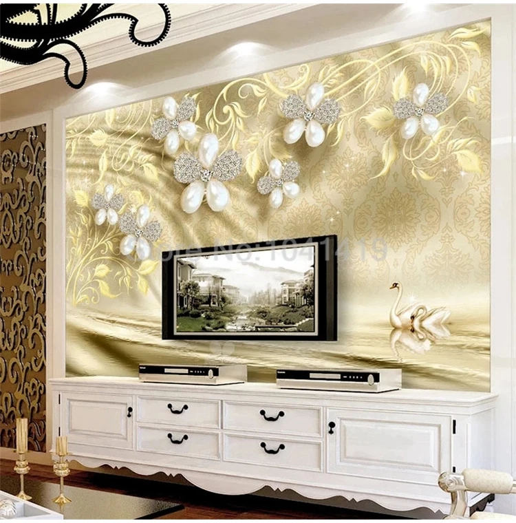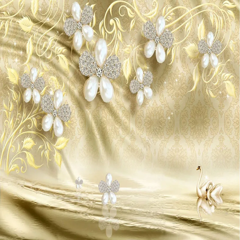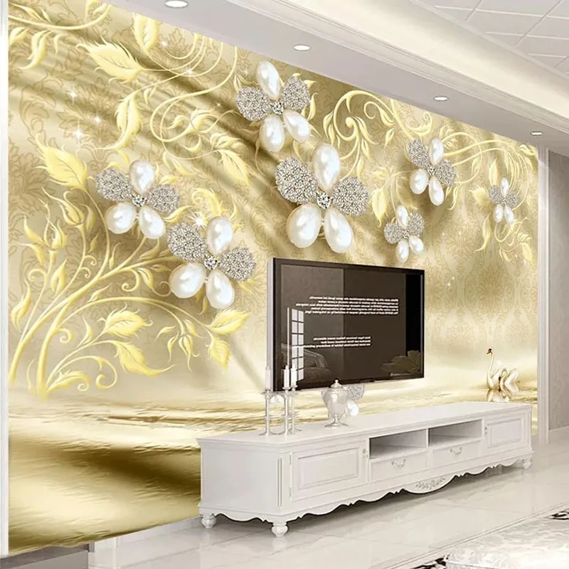 Пользовательские фото обои 3D стерео ювелирные Роскошные жемчужные цветы росписи гостиной ТВ диван фон стены Papel де Parede обои