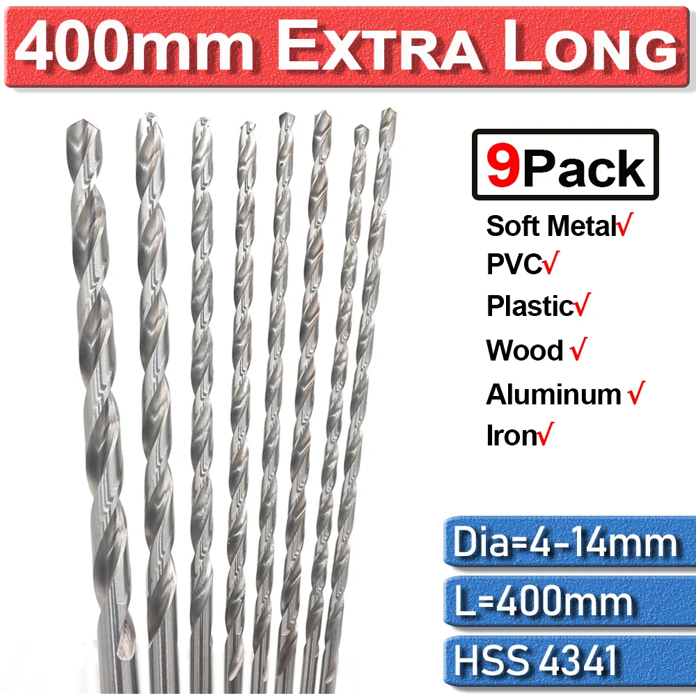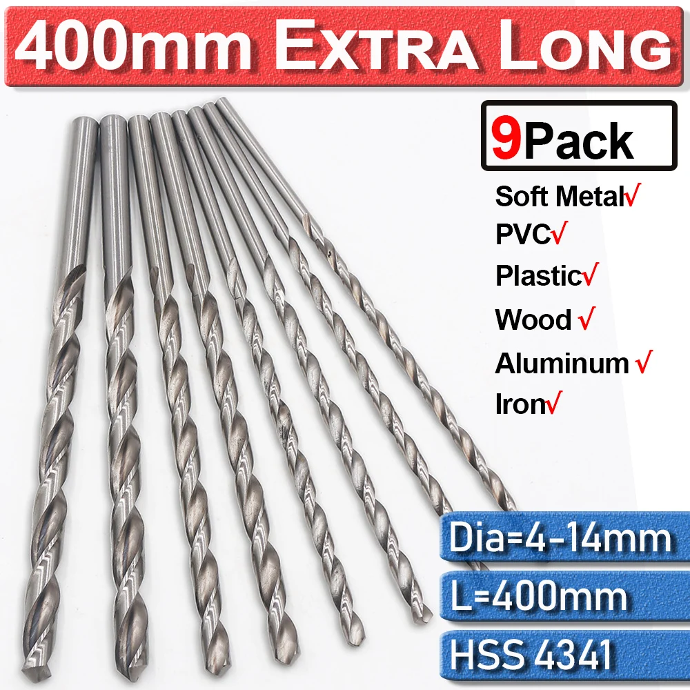 9 шт. 400 мм долпонительные удлиненные высокое Скорость Сталь деревообработки HSS сверла по металлу Сверление дерева 6/7/8/9/10/11/12/13/14 мм
