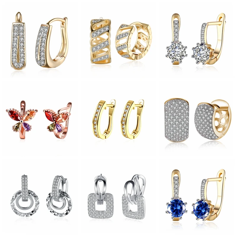 16 пар носков разного случайный Стиль золотые серьги обручи с кубическим цирконием в виде колец геометрической формы серьги для Для женщин оптовая продажа
