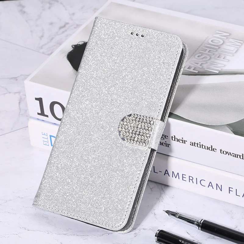 Блестящий Алмазный откидной кожаный чехол-бумажник для телефона Son...