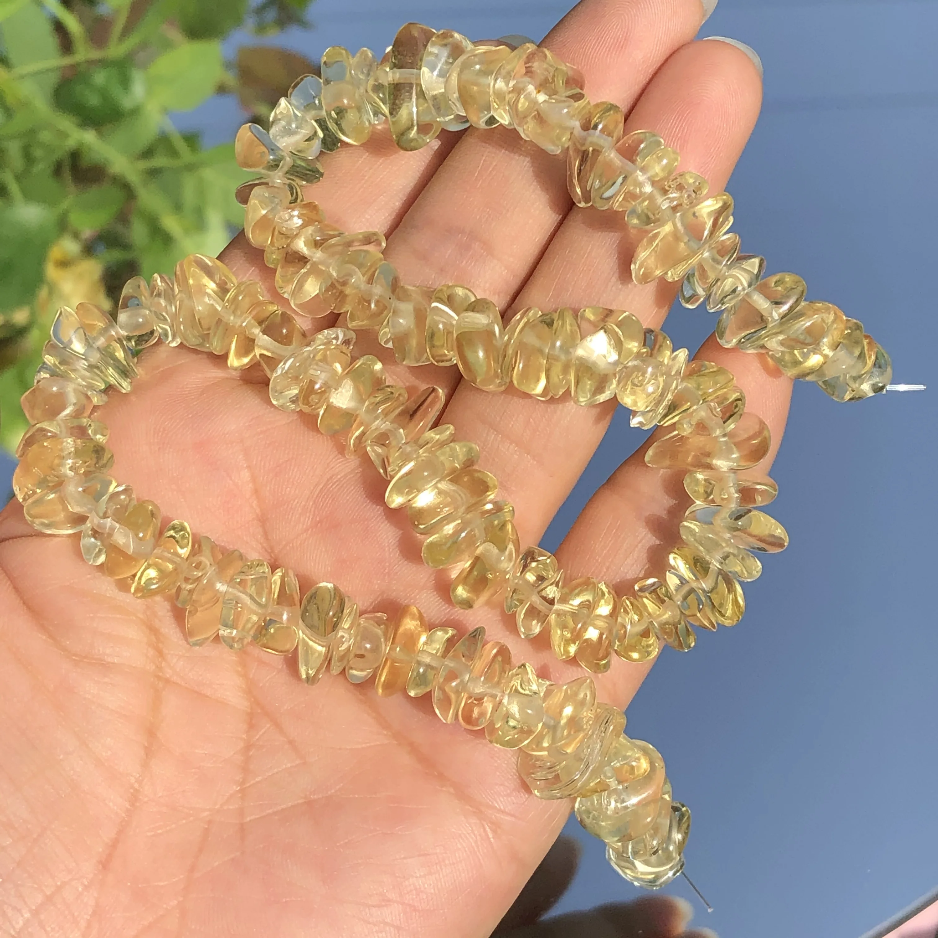 Бусины с кристаллами желтого цитрина, гладкие круглые бусины с отве...