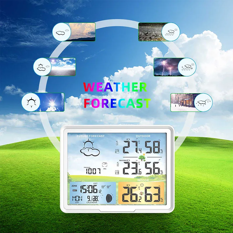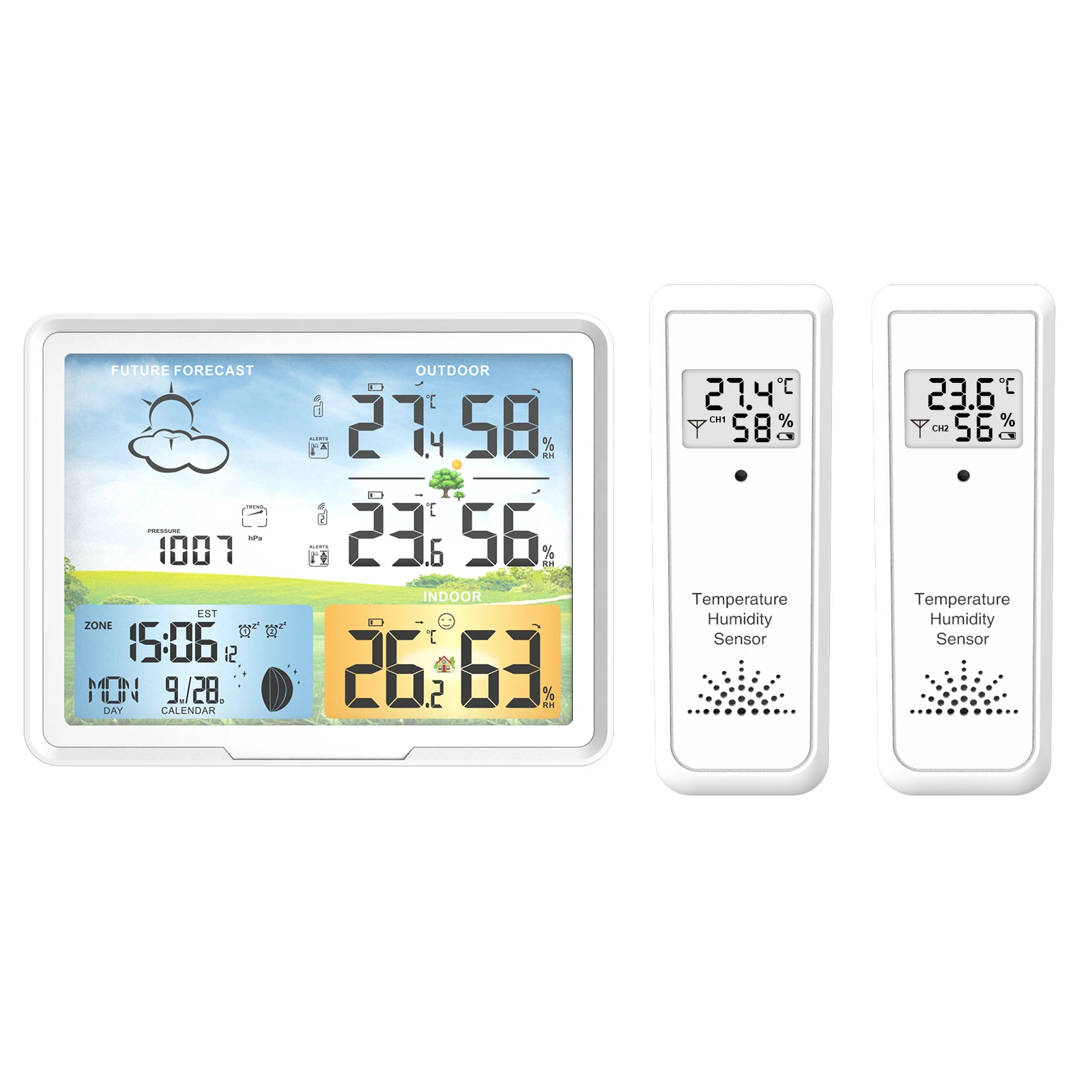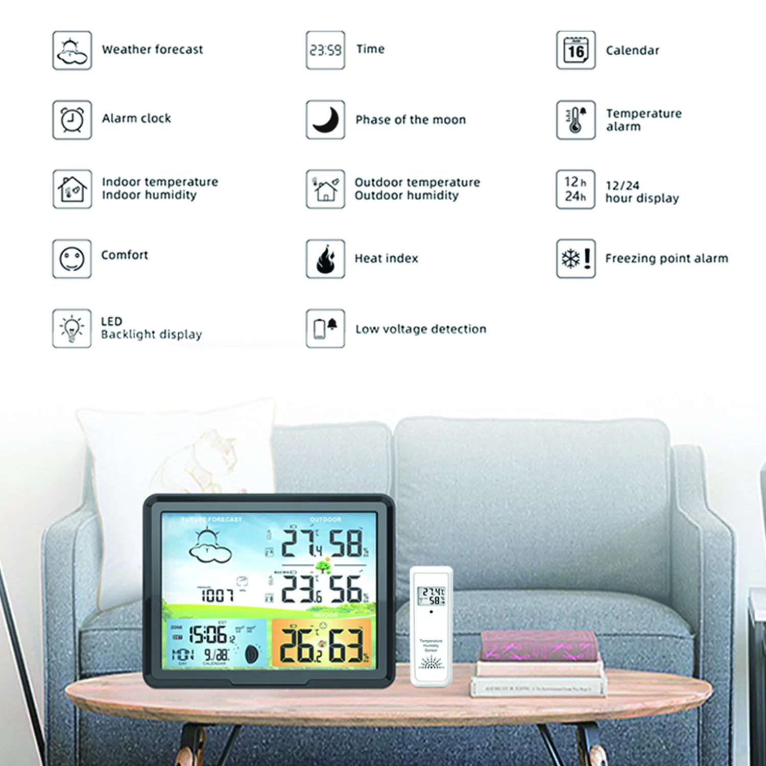 Многофункциональная цифровая метеостанция Protmex PT20, будильник. Имеет функции термометра, гигрометра и барометра, настройте беспроводной датчик. Эти данные можно использовать для прогнозирования погодных условий в будущем. Он не только поможет вам узнать время и календарь, индекс температуры и тепла точки росы. Оповещение о морозе и температуре, уровень комфорта в помещении, но и поможет вам в жизни. Подходит для различных мест, будь то на столе или на стене. Простой и современный дизайн-отличный инструмент и домашний декор.