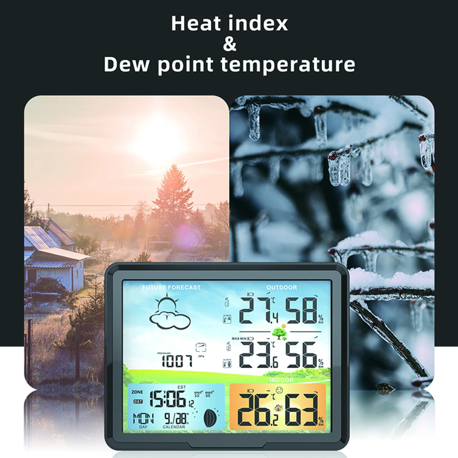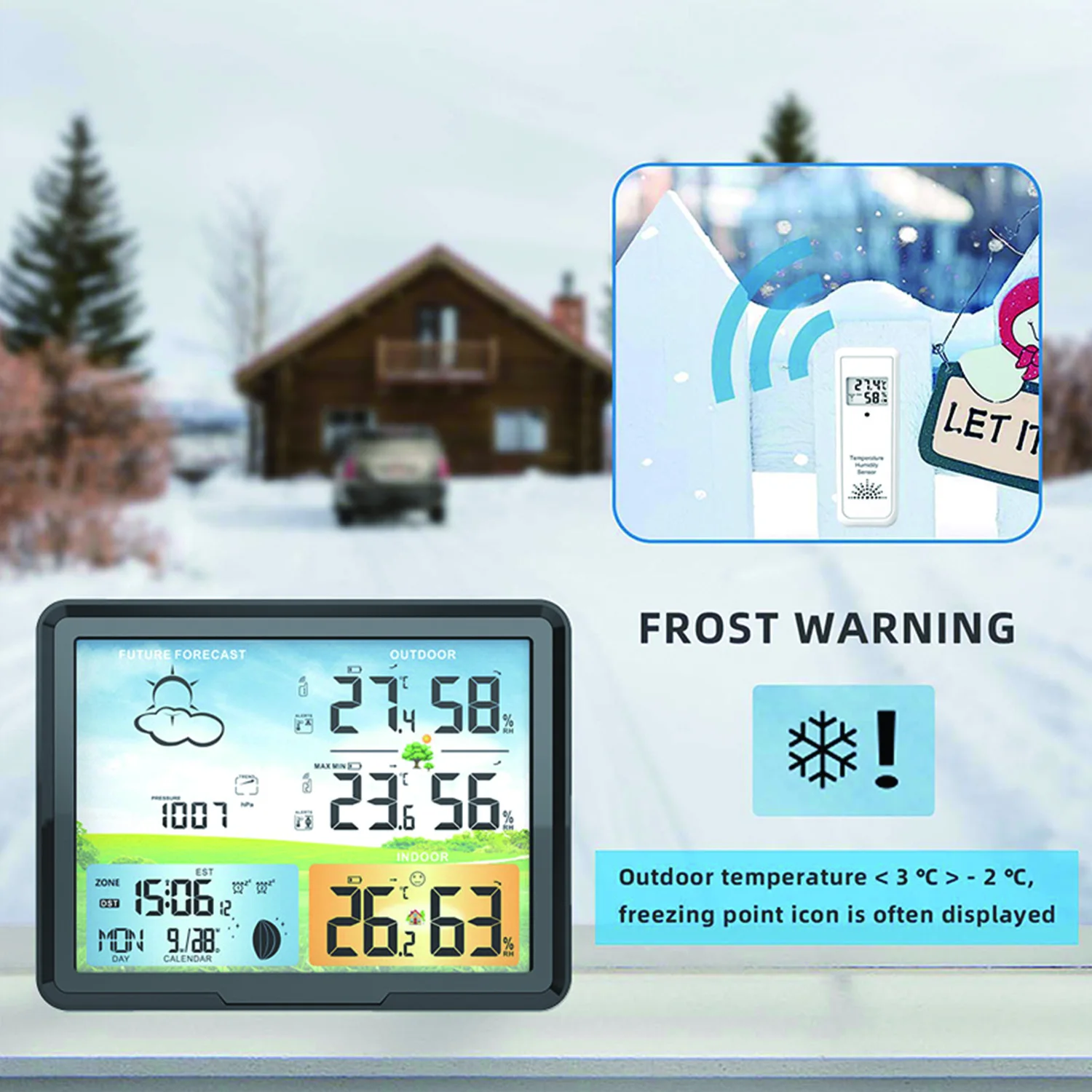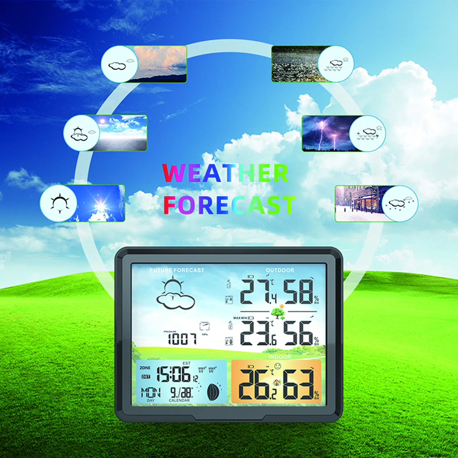 Многофункциональная цифровая метеостанция Protmex PT20, будильник. Имеет функции термометра, гигрометра и барометра, настройте беспроводной датчик. Эти данные можно использовать для прогнозирования погодных условий в будущем. Он не только поможет вам узнать время и календарь, индекс температуры и тепла точки росы. Оповещение о морозе и температуре, уровень комфорта в помещении, но и поможет вам в жизни. Подходит для различных мест, будь то на столе или на стене. Простой и современный дизайн-отличный инструмент и домашний декор.