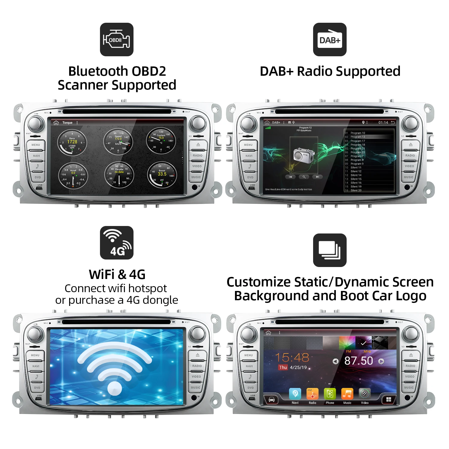 Bosion Android 10 автомобильный DVD-радио мультимедийный плеер для Ford Focus S-Max Mondeo Galaxy C-Max 2 Din IPS DSP CarPlay GPS навигация