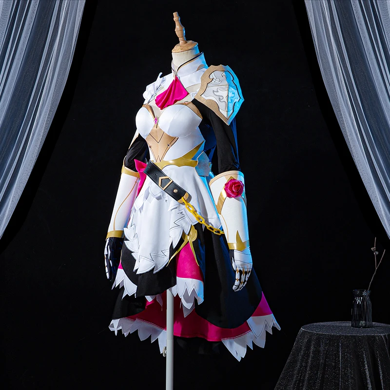 Полный комплект включает в себя: цельнокроеное платье, галстук-бабочка, аксессуары для воротника, ремень, поясной аксессуар, наплечная броня, рукавицы * 4, головные уборы, заколки, перчатки * 2, повязки * 2