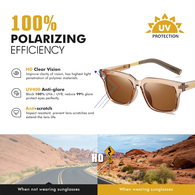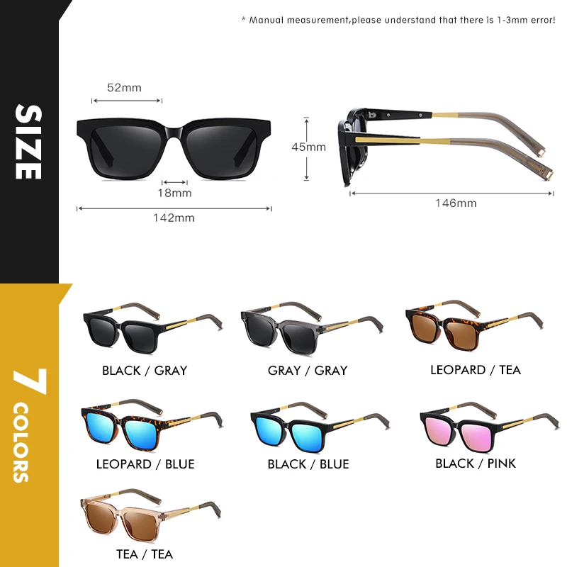 Мужские и женские квадратные поляризованные солнцезащитные очки LIO...