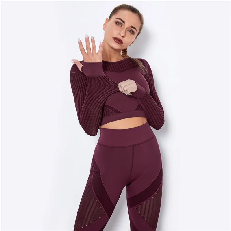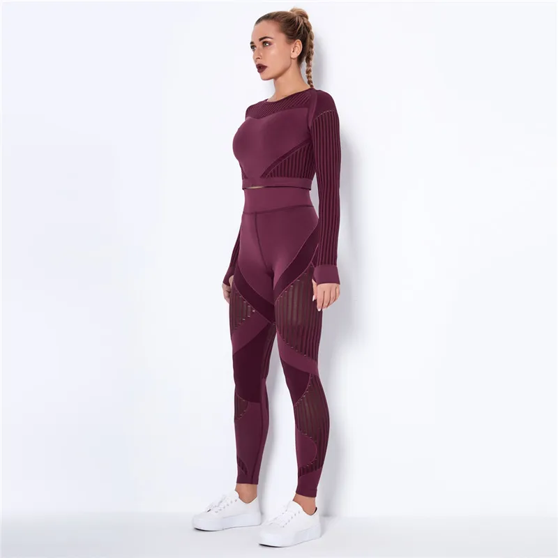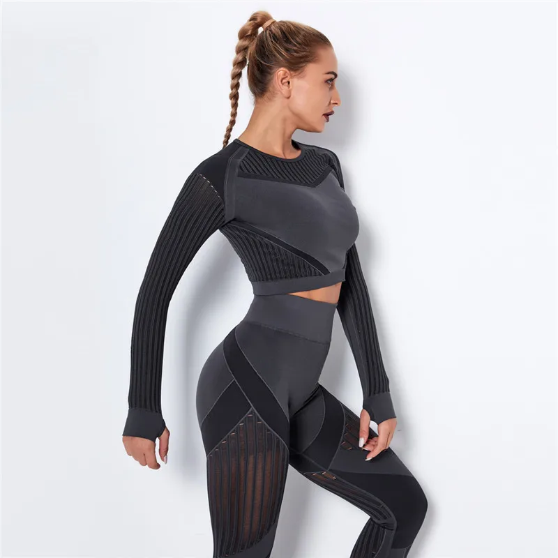 Открытыми пальцами с глубоким вырезом, сеточной подкладкой тренажерный зал Ювелирные наборы для женщин из 2 частей Леггинсы для йоги с высокой талией + укороченный топ бесшовный бюстгальтер для занятия йогой спортивный костюм спортивная одежда Детские костюмы новые