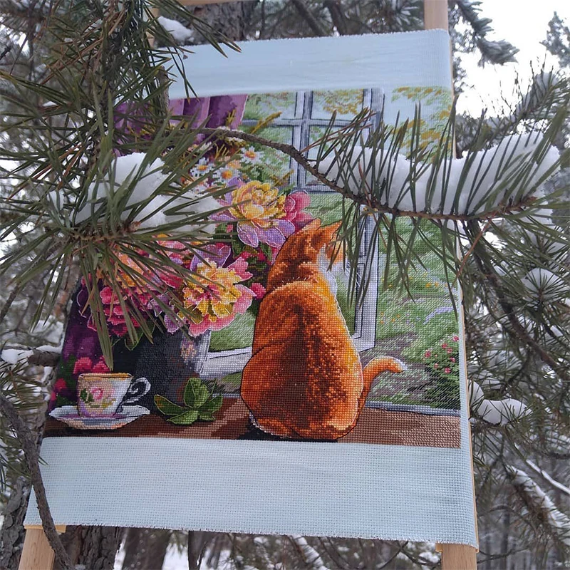Летний Набор для вышивки крестиком кошки без принта холст вышивка рукоделие 11CT 14CT DIY ручной работы Домашний декор картины