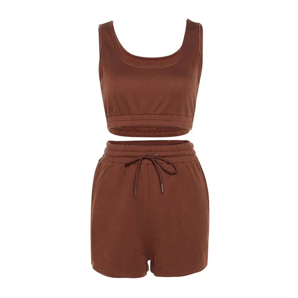 Комплект Спортивный женский из двух предметов, укороченный топ и шо...