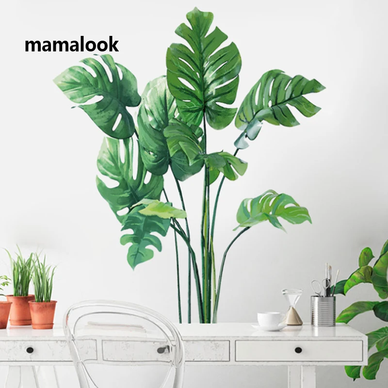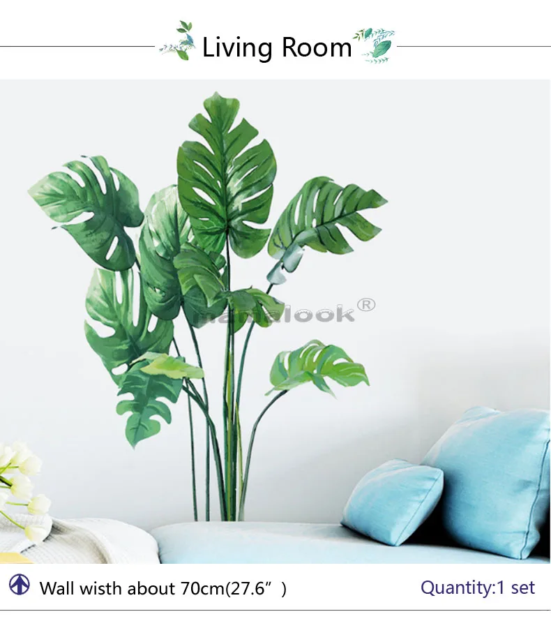 Большие Тропические Зеленые растения, листья, наклейка на стену, Декор для дома, наклейка на ладонь, украшение для комнаты, ПВХ фрески