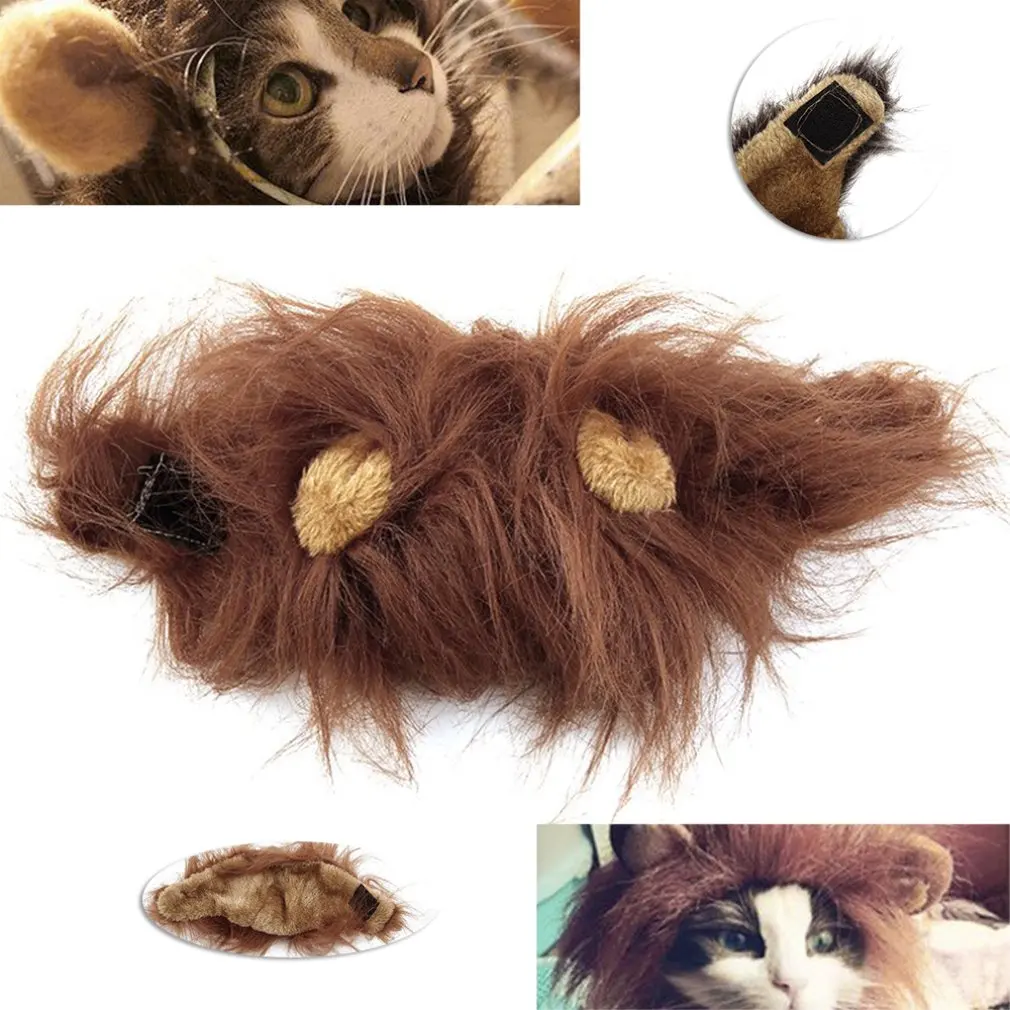 Прекрасный костюм для домашних животных, парик Львиной гривы для кота, костюм на Хэллоуин, Рождество, вечеринку, головной убор, головной убор для игры, прелестная одежда, хлопок