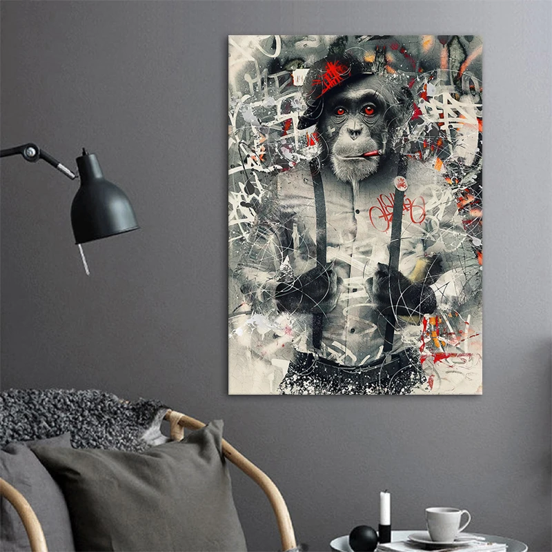 Плакаты с принтом обезьяны и граффити, современные настенные картины с животными, курительные стены с обезьянами, декор для гостиной