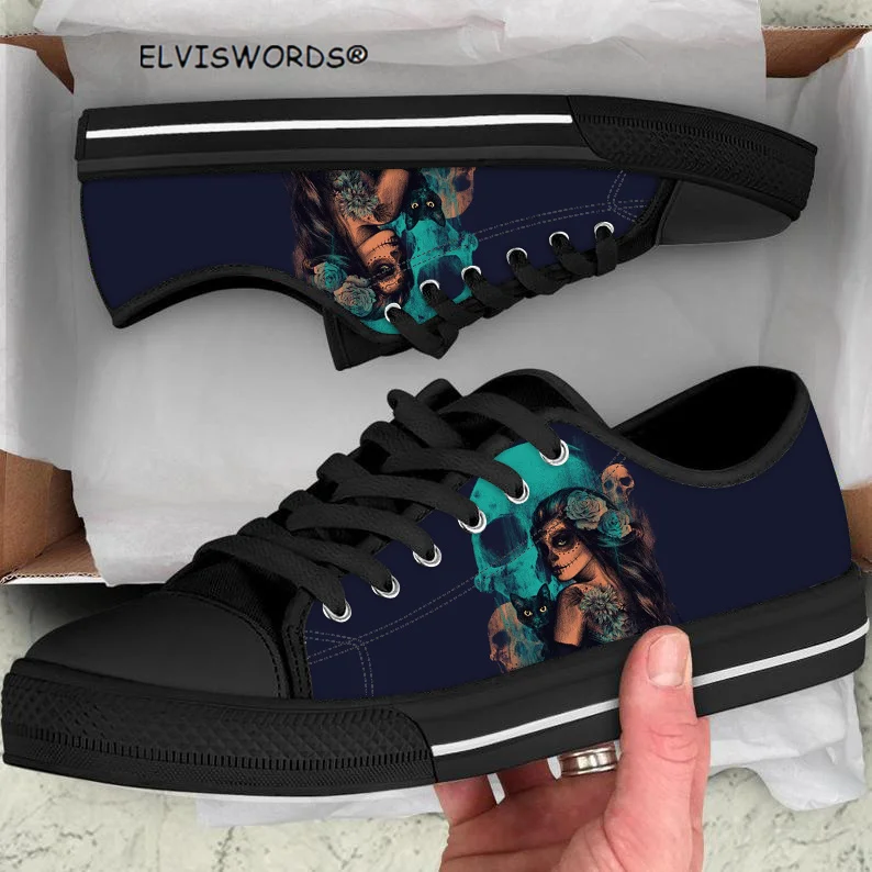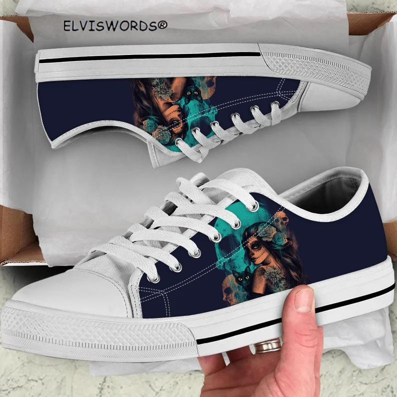 ELVISWORDS День мертвых сахарный череп дизайн Модная женская дышащая Вулканизированная обувь для отдыха женские низкие стильные кроссовки