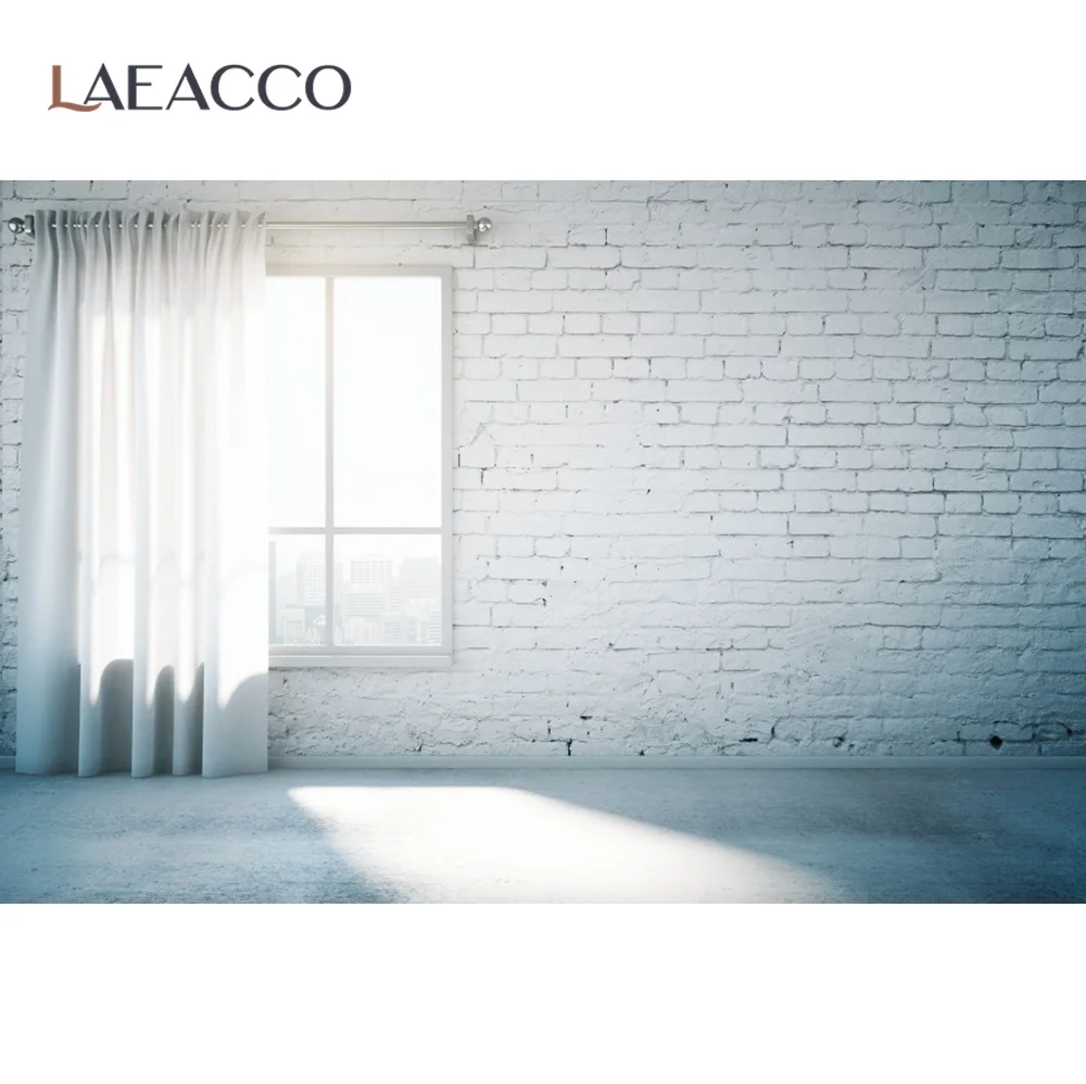 Занавески Laeacco для фотографий, серо-белые кирпичи, дома, окна, солнечного света, интерьера, 3D узор, фон, фото-декорации