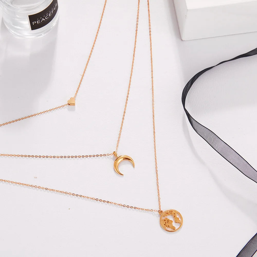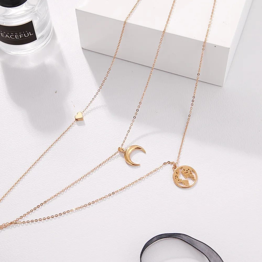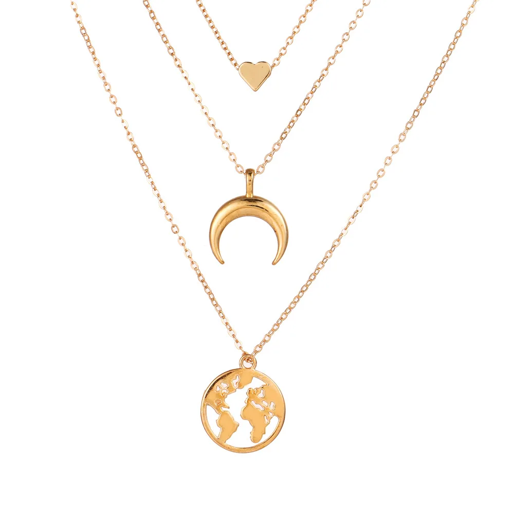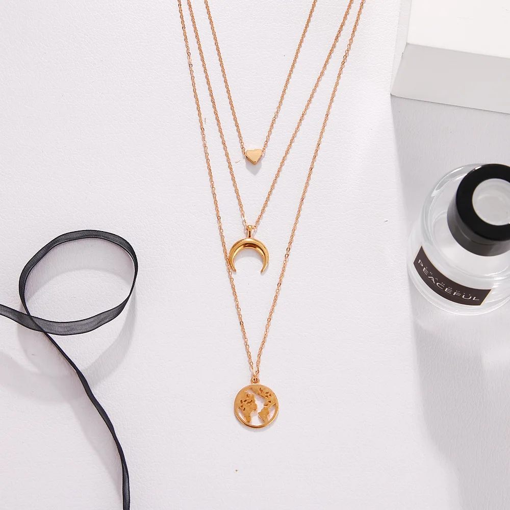 Винтаж Звезда карта луна ожерелье для женщин модные золотые Цвет ожерелье Многослойные Длинные ожерелья с подвесками в стиле Бохо ювелирные изделия
