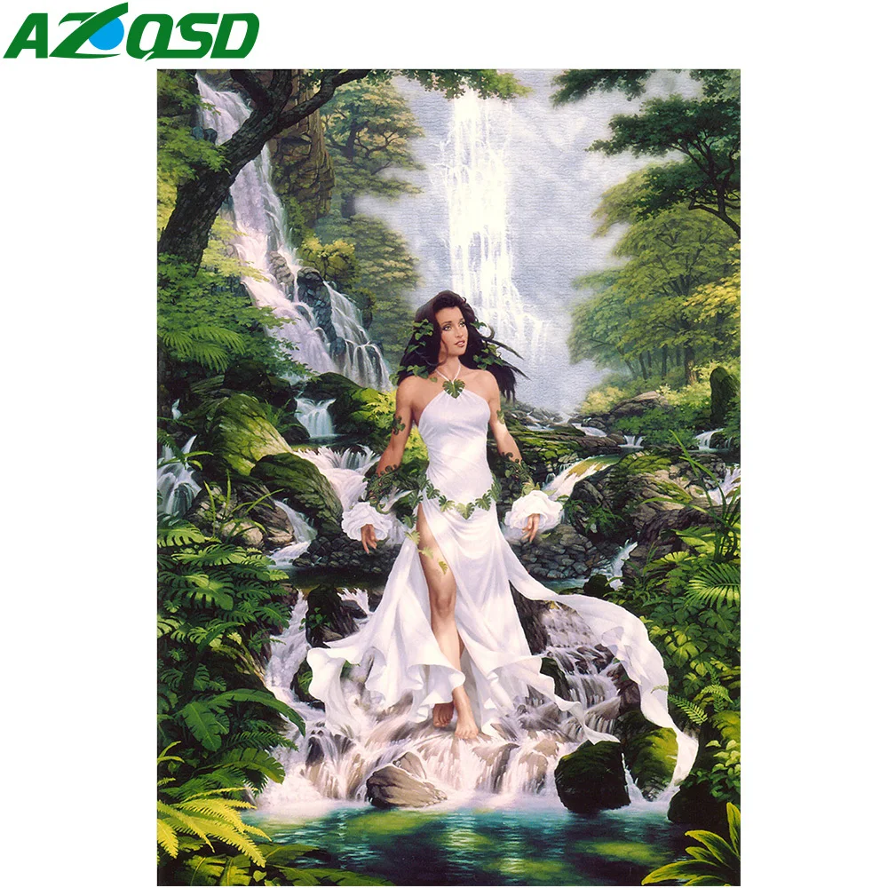 AZQSD полностью квадратная Алмазная картина водопад вышивка крестом украшение дома Алмазная вышивка пейзаж мозаика ручной работы подарок