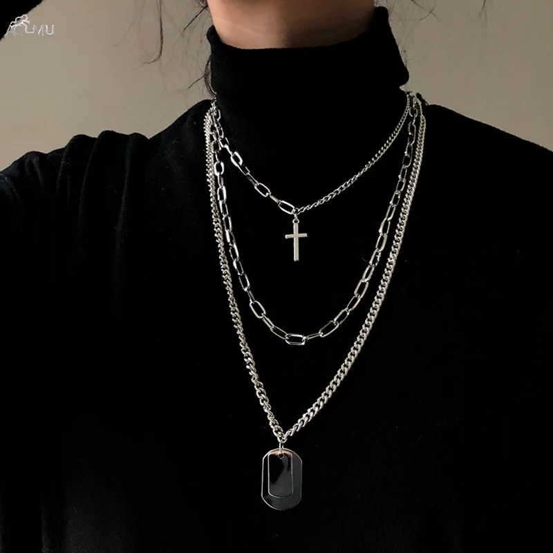 Ожерелье AOMU с подвеской-крестом для женщин и мужчин, металлическая цепь серебряного цвета с геометрическим дизайном прямоугольной формы, подарочное колье до ключицы