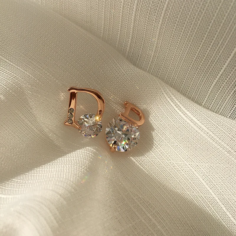 2021 золотые серьги с буквой D из циркония, простые металлические Винтажные серьги для женщин, Модная бижутерия, серьги для девочек