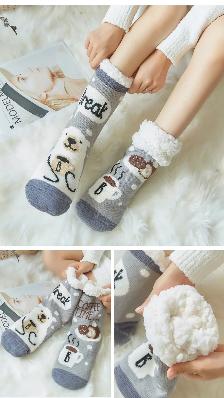Рождественские плотные теплые махровые носки для пола, женские зимн...