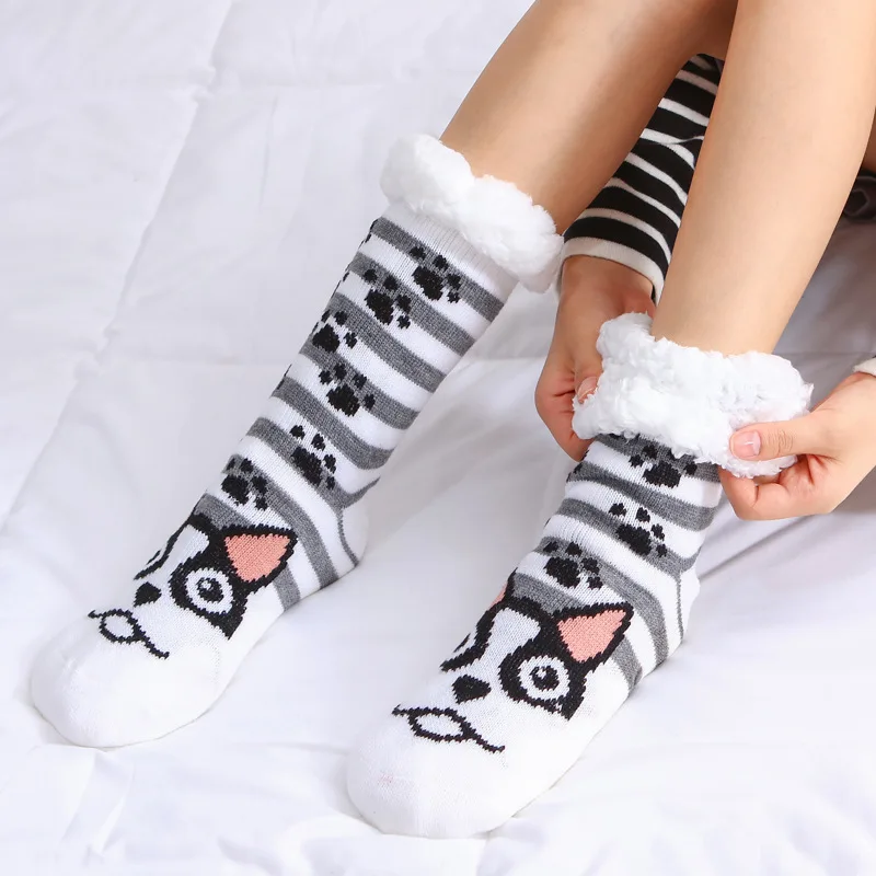 Женские зимние рождественские носки, хлопковые утепленные Нескользящие теплые флисовые Носки с принтом, Женские Смешные носки в стиле Харадзюку, уличная одежда 2021