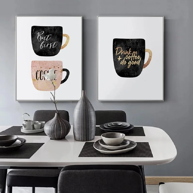 Но первый кофе красочные чашки кофе Кухня Печать постер Скандинавск...