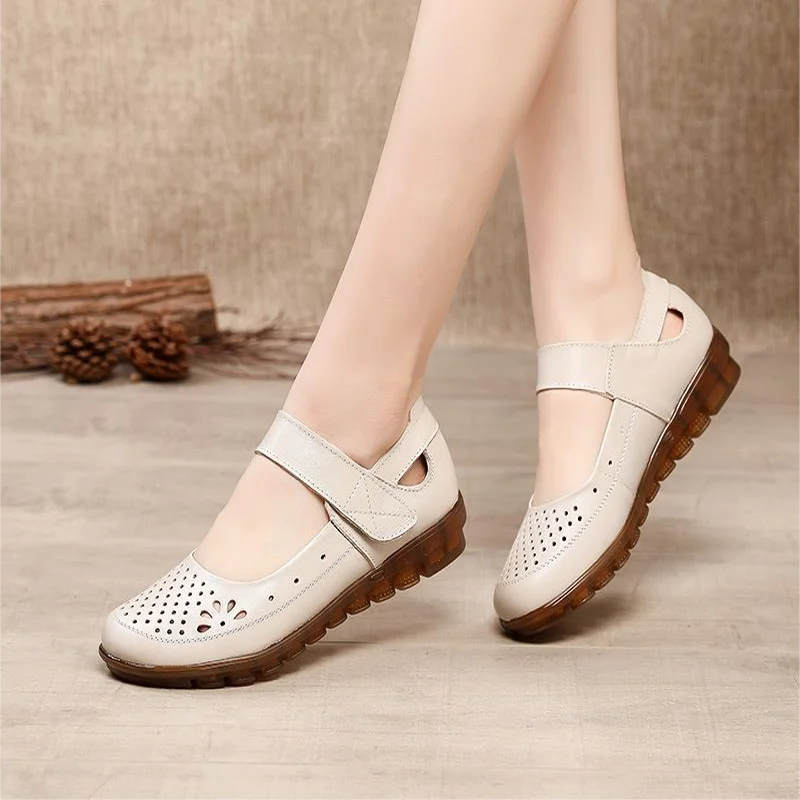 Женские босоножки на плоской подошве, из натуральной кожи, с круглым носком