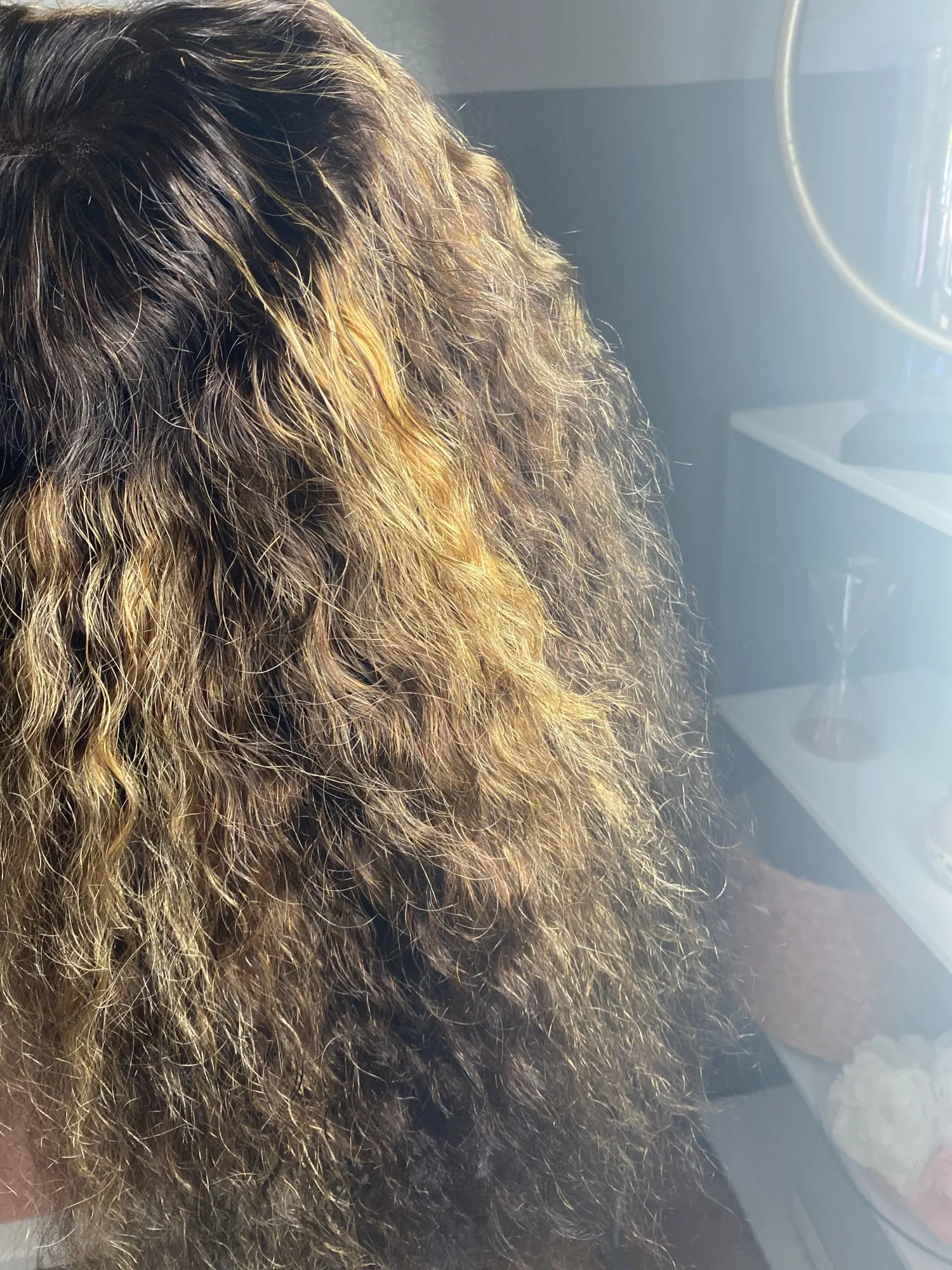 Отличный парик по цене! Я отбелил узлы и использовал немного кремниевой смеси для его состояния. Красиво локоны и выглядят очень естественно. У меня есть маленькая голова, и я смог отрегулировать ремни, чтобы соответствовать моей голове с большим ударом сзади! Куплю снова.