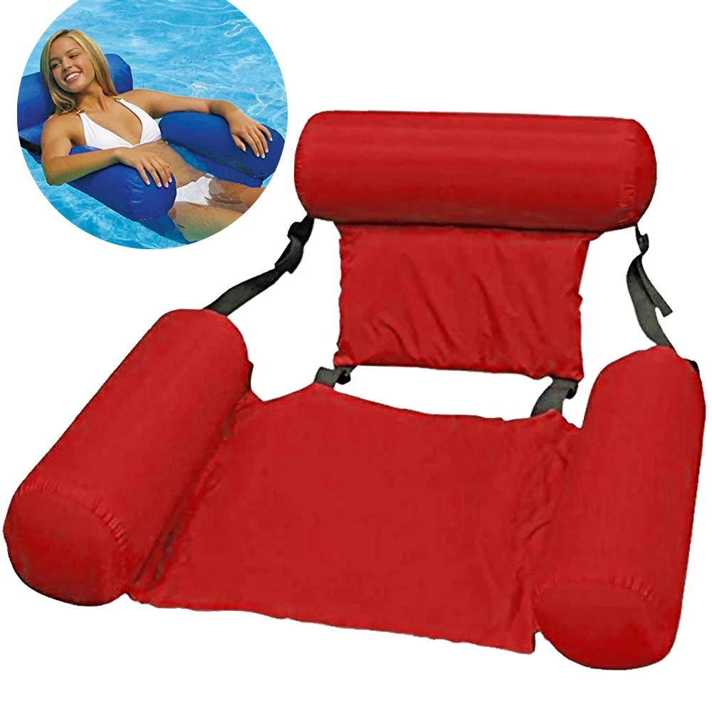 Надувной водный Шезлонг Кресло 70х50х30 см летний Матрас для бассейна и плавания Красный