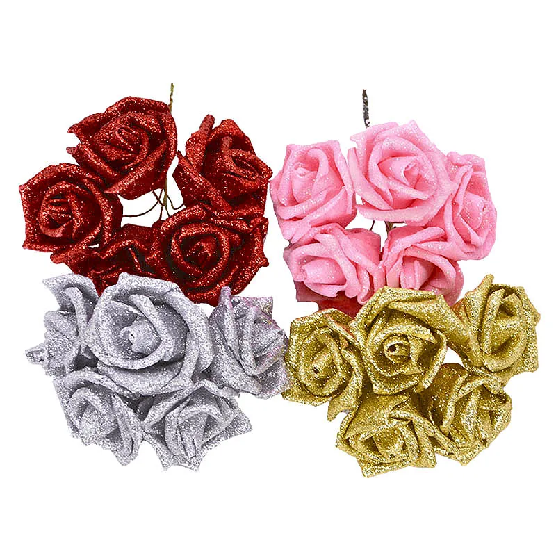 Искусственные розы из пеноматериала с блестками, свадебный букет для украшения свадебной вечеринки, венок сделай сам, товары для скрапбукинга, искусственные цветы, 1020 шт.