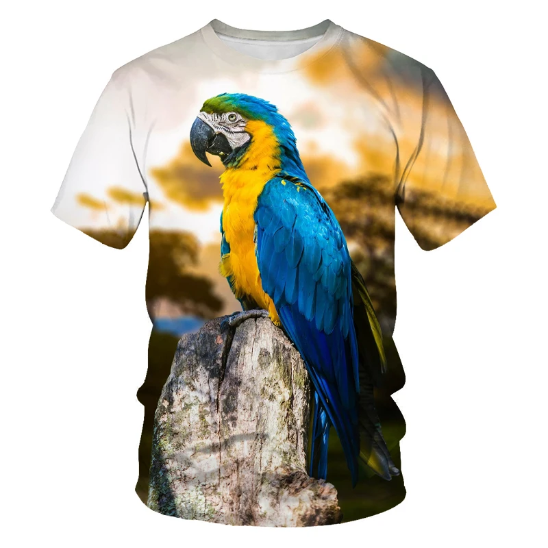 Новые летние мужскиеженские футболки с 3D принтом, птицы, попугаи, футболки большого размера, крутая детская одежда, одежда для пар (100-6XL)