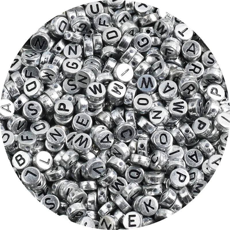 Акриловые бусины с буквами, серебристые круглые плоские алфавиты, бусины россыпью с отверстиями для женского браслета, ожерелья