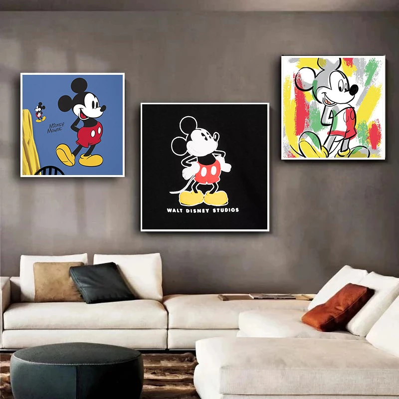 Диснеевские Мультяшные красочные Микки Маус Холст Картина граффити ...