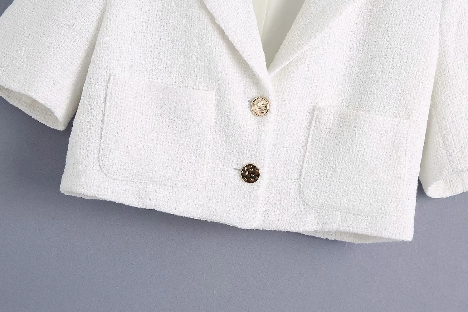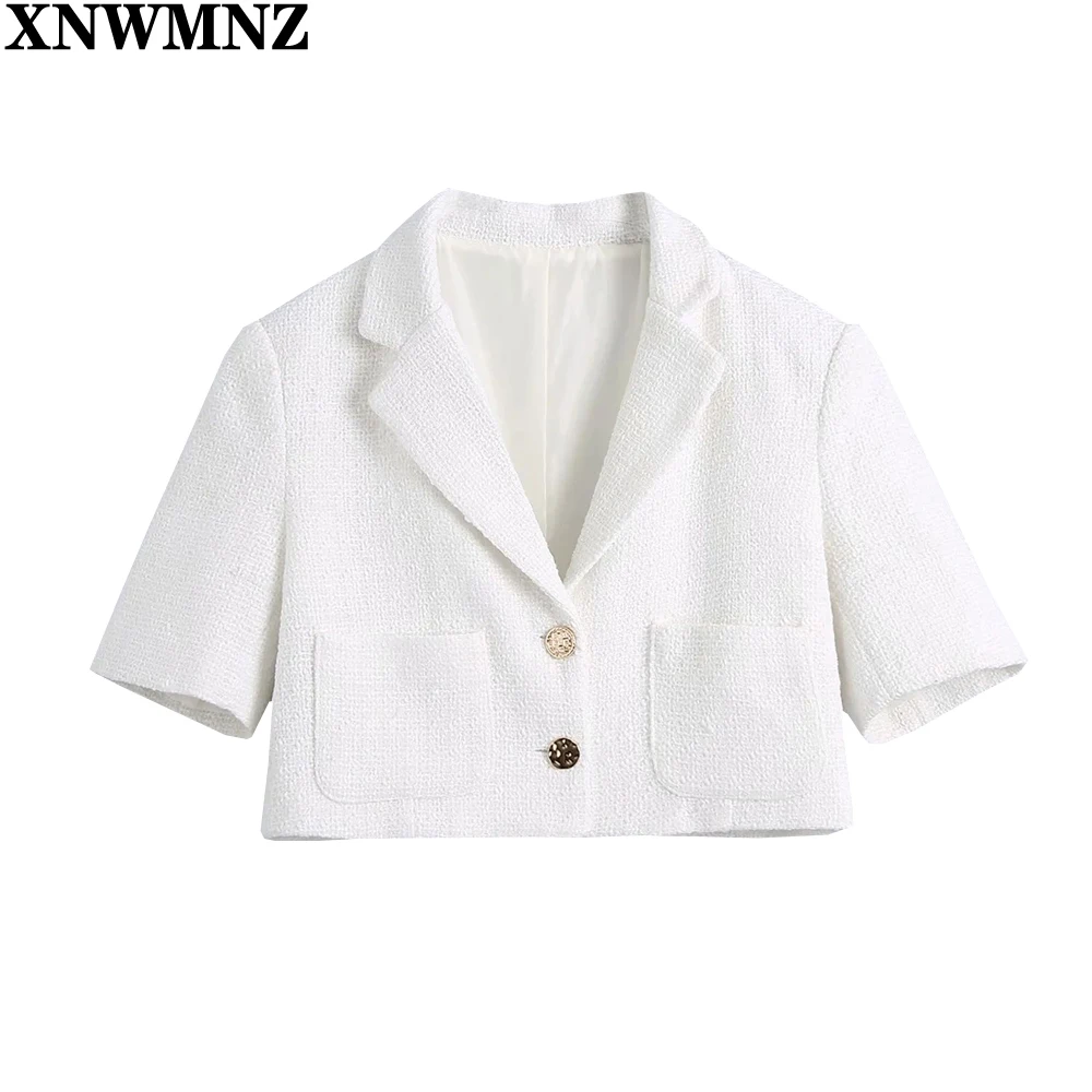 XNWMNZ 2021 Модный женский белый укороченный пиджак женский воротник с отворотом короткий рукав укороченный пиджак s пальто женская верхняя одежда шикарные топы