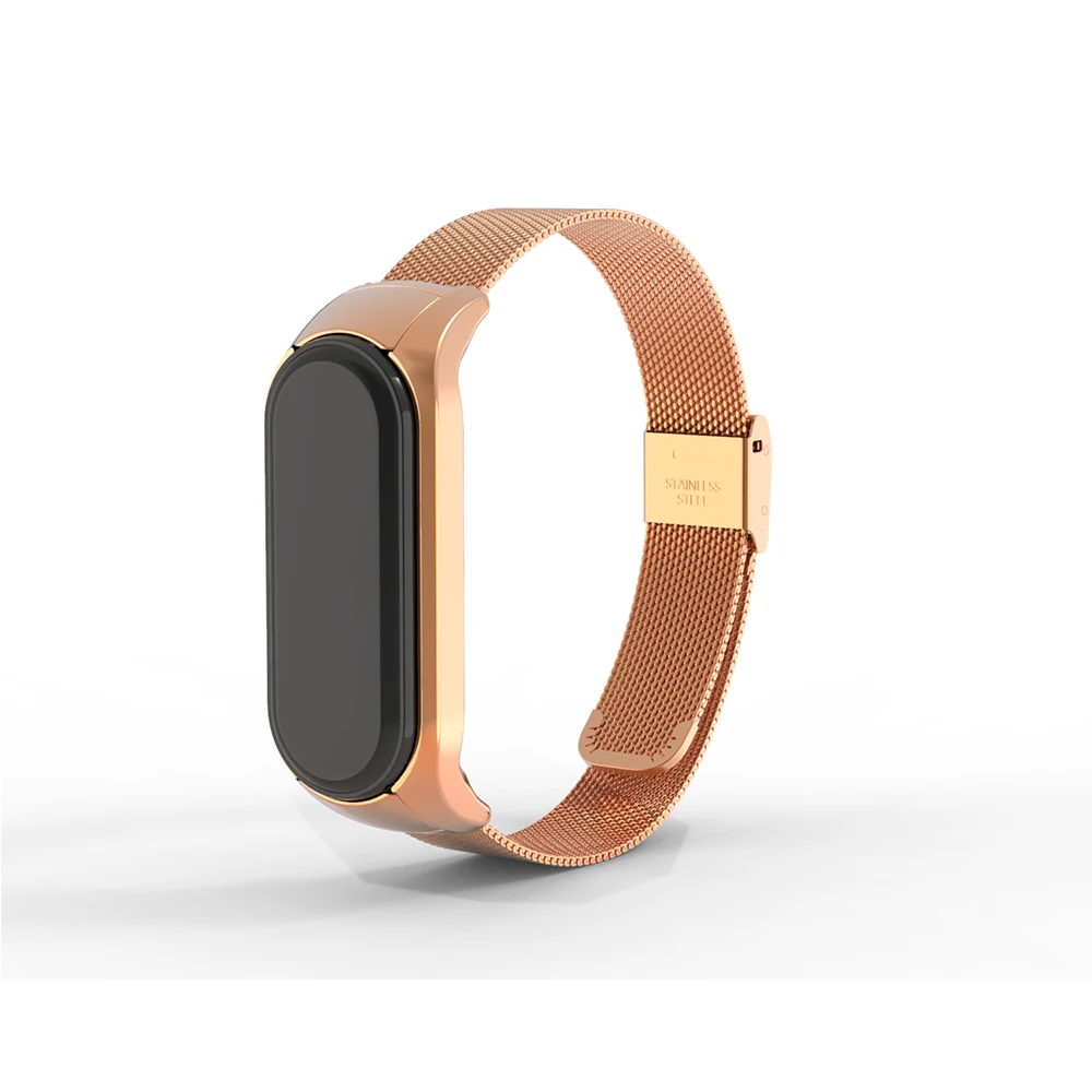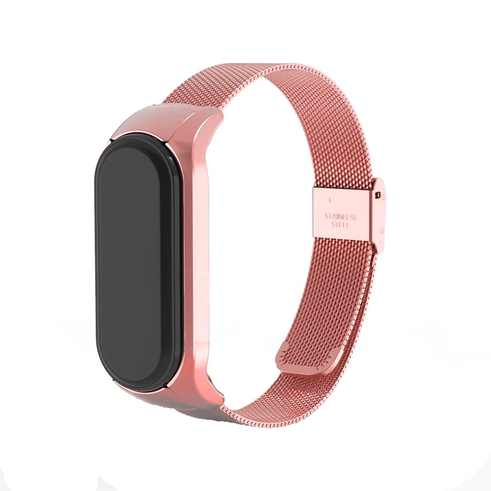 Миланский ремешок для Xiaomi mi band 6543, металлический ремешок для xiaomi, ремешок с пряжкой из нержавеющей стали, браслеты унисекс, серебристо-розовый