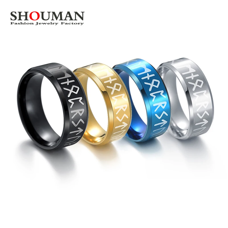 SHOUMAN Ретро амулет с надписью викингов черный Золотой Синий Серебряный Цвет винтажные скандинавские руны панк кольцо для женщин и мужчин ювелирные изделия