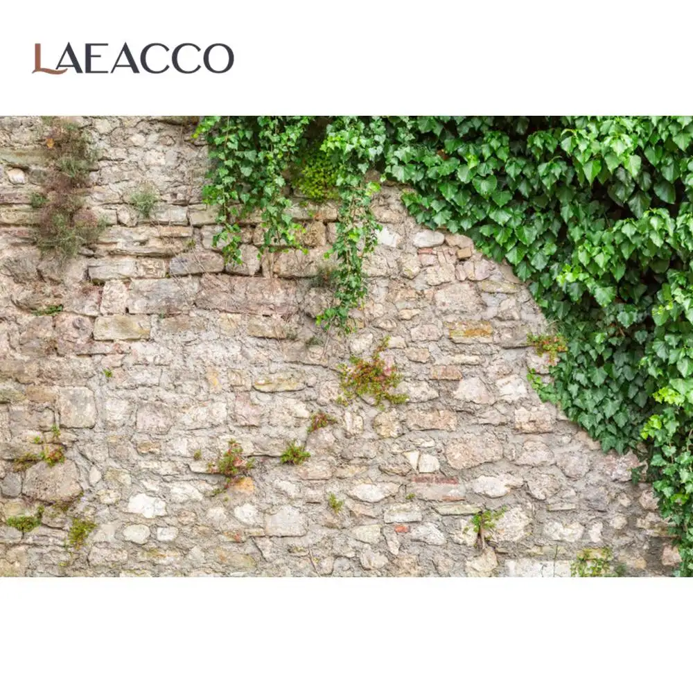 Laeacco каменная стена фоны для фотографии кирпичная стена зеленые виноградные растения Фотофон сельская живописная фотография фоны для фотостудии