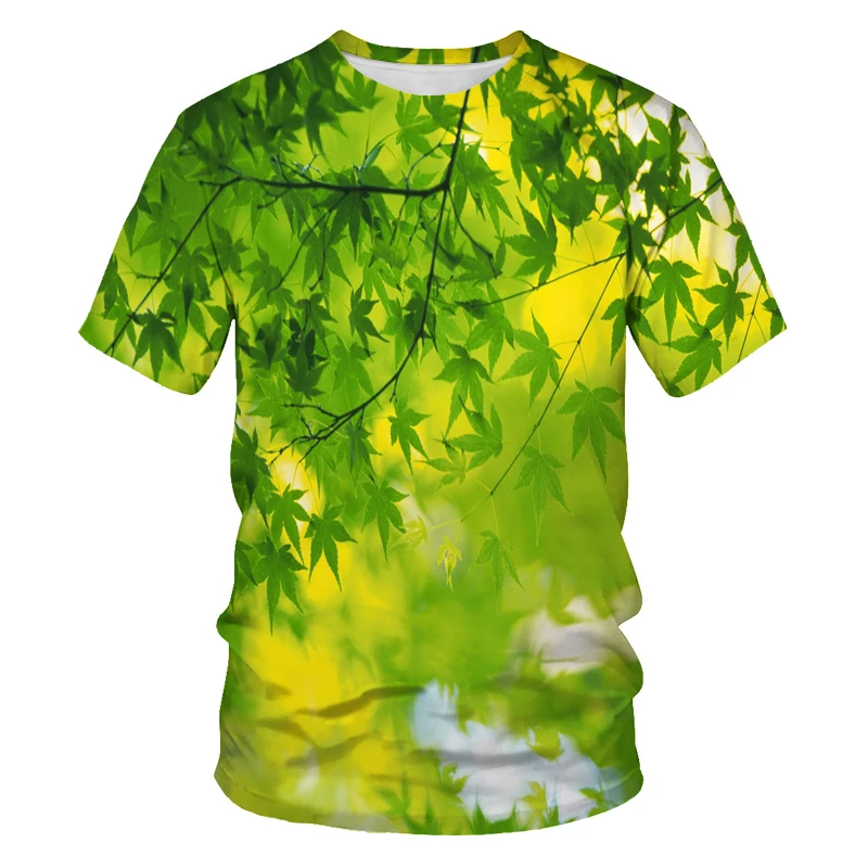 Новые летние мужскиеженские футболки с 3D принтом, футболки большого размера с зелеными цветами, крутая детская одежда, одежда для пар (100-6XL)