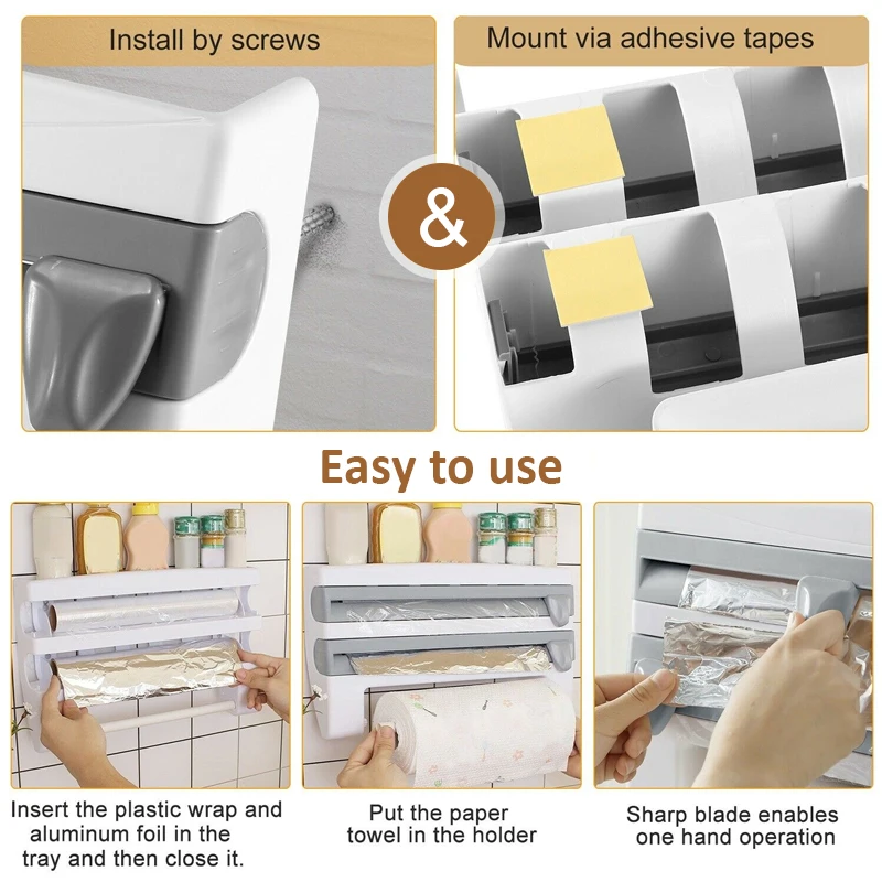 Подходит для любого случая, соедините наш диспенсер для пленки с нашим диспенсером из алюминиевой фольги и держателем для бумажных полотенец и дозатором для выпечки; Неподвластный времени и веселье, красочный и современный дизайн; Можно легко хранить в ящиках и шкафах, простота в использовании и очистке