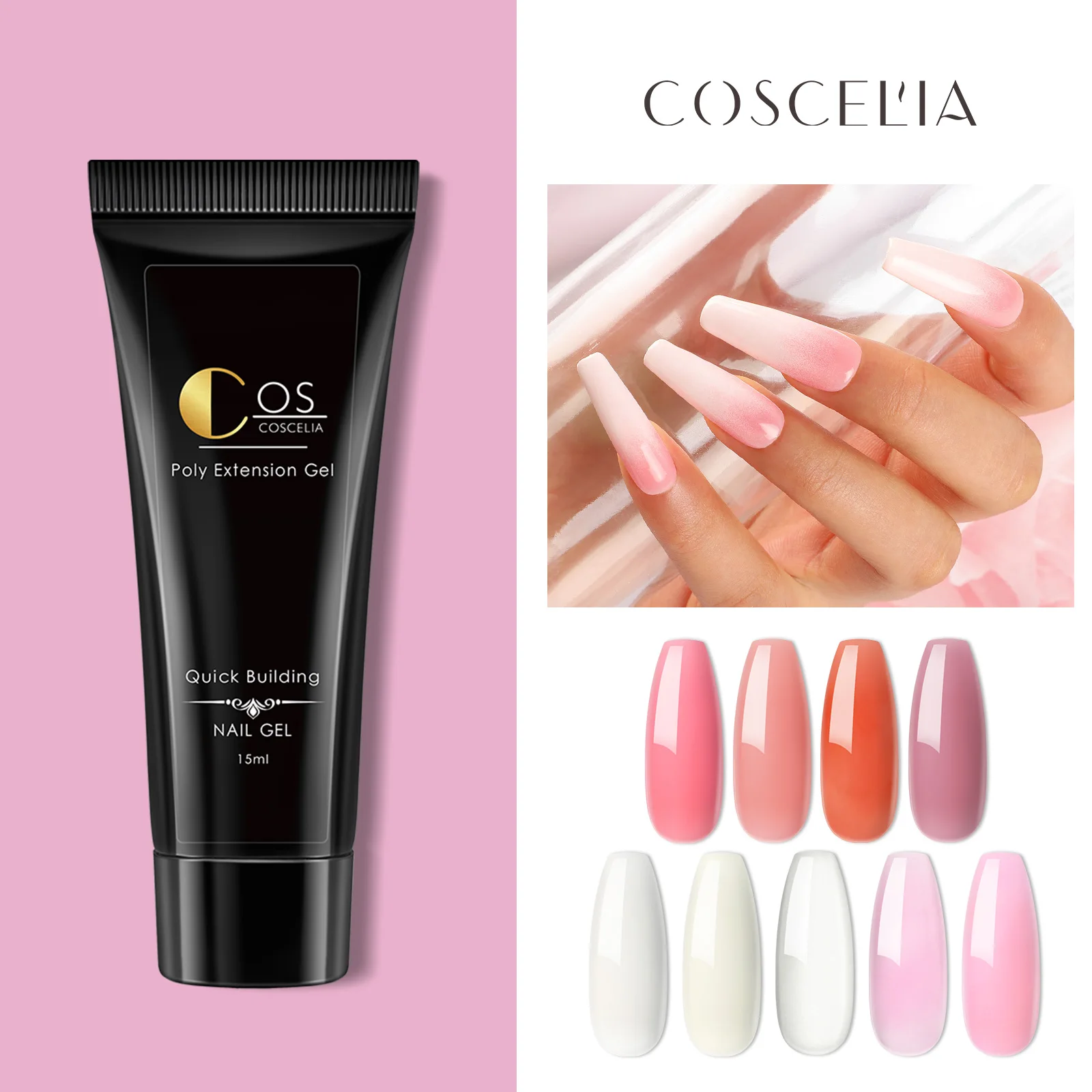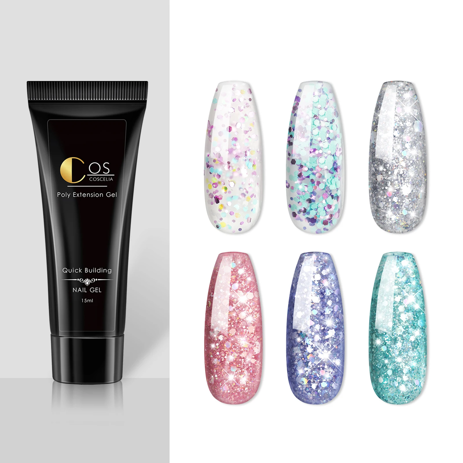 Полигель для наращивания ногтей COSCELIA, блестящий Гель-лак для маникюра, полигель для ногтей, Полупостоянный гель для ногтей, удаляемый замачиванием, дизайн ногтей