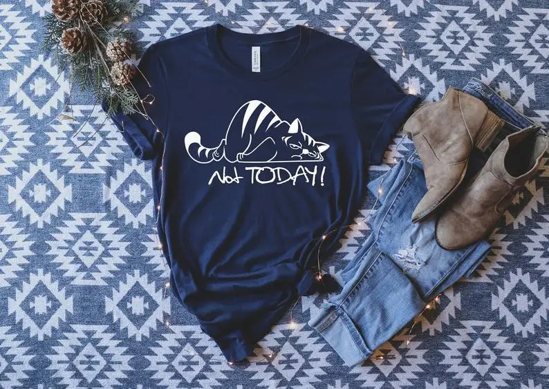 Не сегодня, рубашка с рисунком кошка животных для мамы размера плюс с буквенным принтом для женщин футболки 100% хлопок футболки с круглым вырезом черный рубашка в клетку с короткими рукавами топы, футболки для девочек