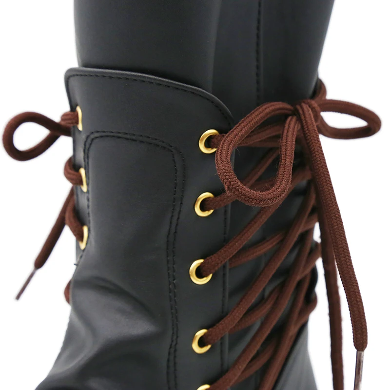Женские кожаные ботинки до середины икры, осенне-зимние мотоциклетные ботинки в стиле ретро, панк, на шнуровке, с круглым носком, ковбойские ботинки в западном стиле